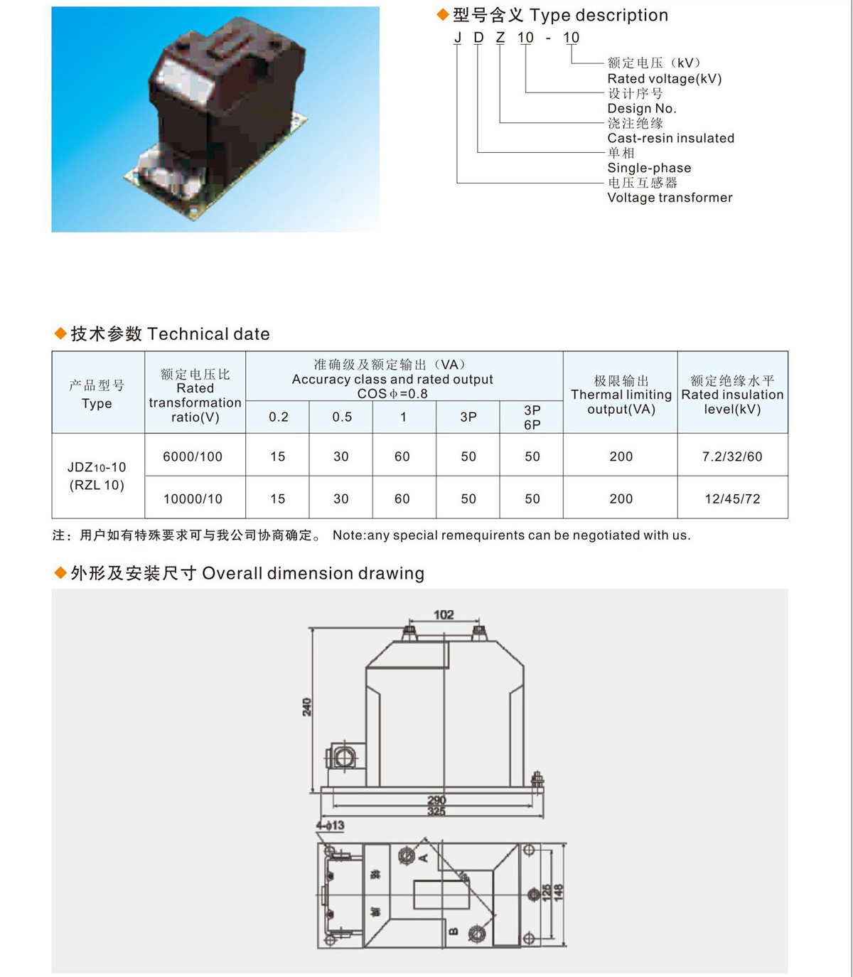 JDZ10-10 型电压互感器(等同于RZL-10)